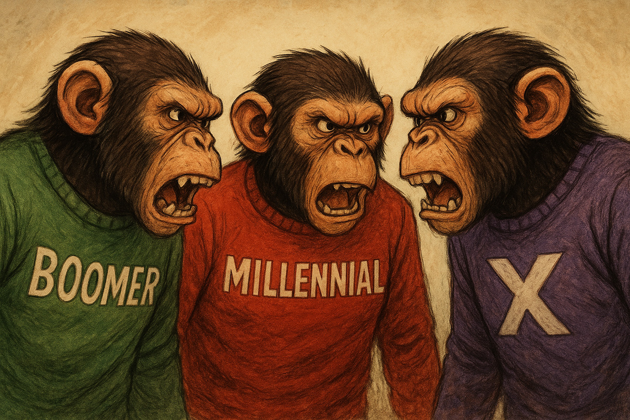 The “generations” are just another dumb excuse to form artificial tribes and fight each other like the other ape species do. There will never be a civilized, ethical, fair society so long as tribal apes are allowed to vote.