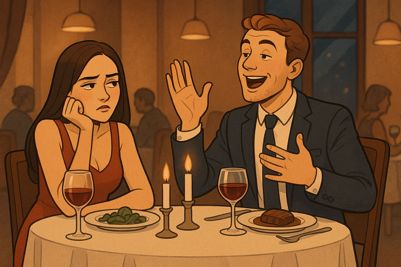 Many people have experienced a date where the other person talked only about himself/herself, or only about external topics (perhaps very interesting topics or news, but still no attempt to get to know the other person). Sometimes a person does ask suitable questions, but it becomes evident that this is performative and not genuine interest.